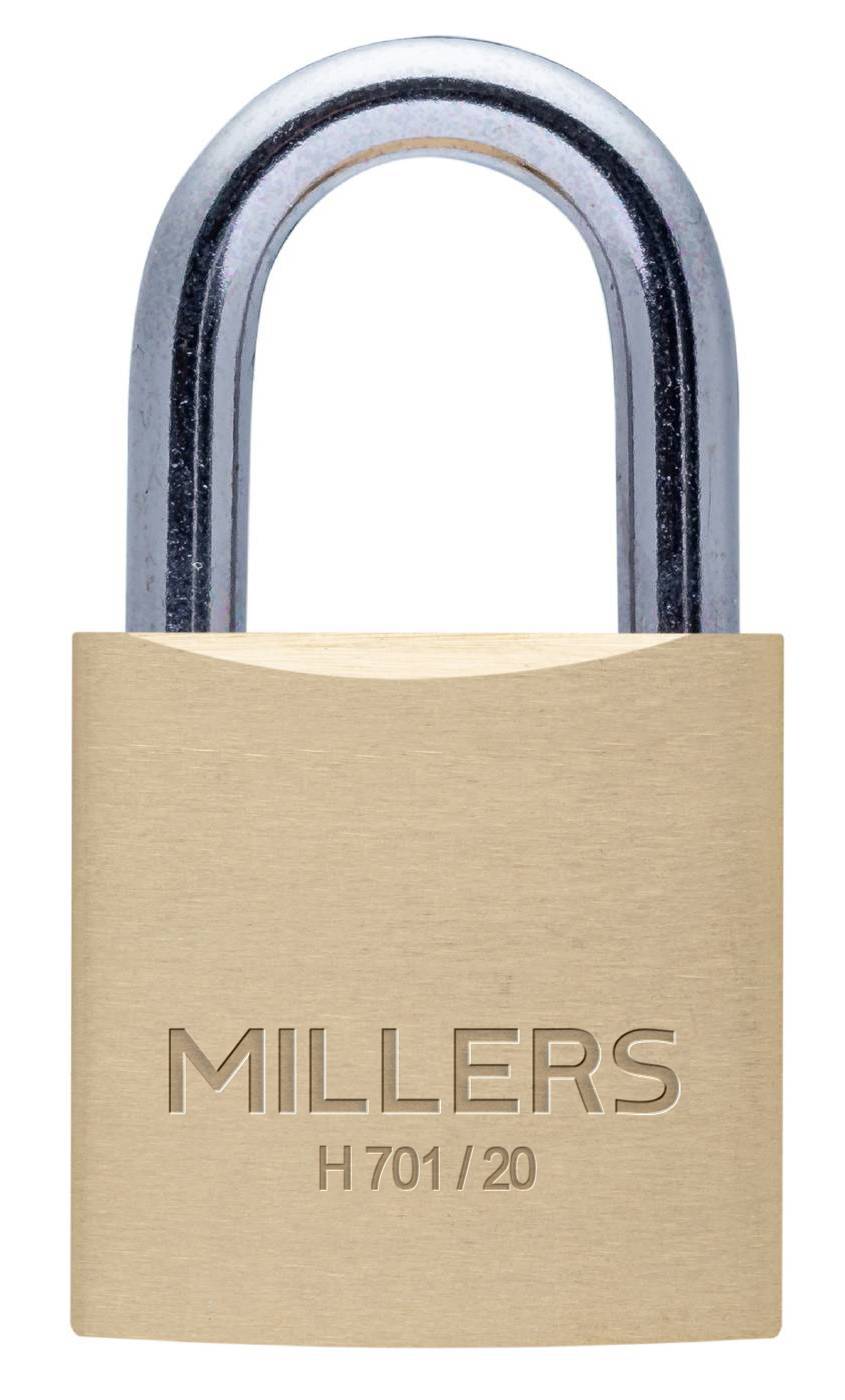 Hengelås av kraftigere modell, i massiv messing med sylinder i messing. Herdet dobbelreilet bøyle i stål. Bruksområde: Garderobeskap, boder, verktøykasser etc. der ingen spesifikke krav på låsing kreves. De artikler som har 2-pk eller 3-pk har likelåsing.