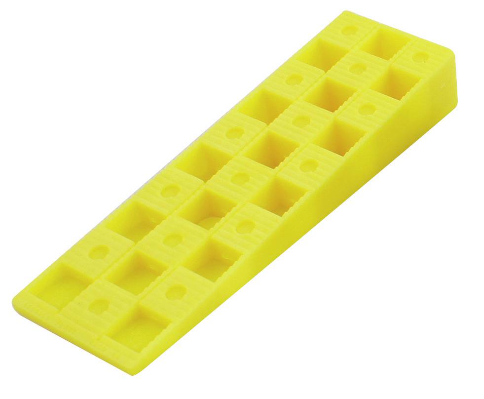 Oppalling av gulv, vinduer, dørmontering etc. forenkles med hjelp av kiler. Utstyrt med haker slik at kilene kan skyves inn i hverandre uten å skli fra hverandre. Fargen markerer ulike størrelser.