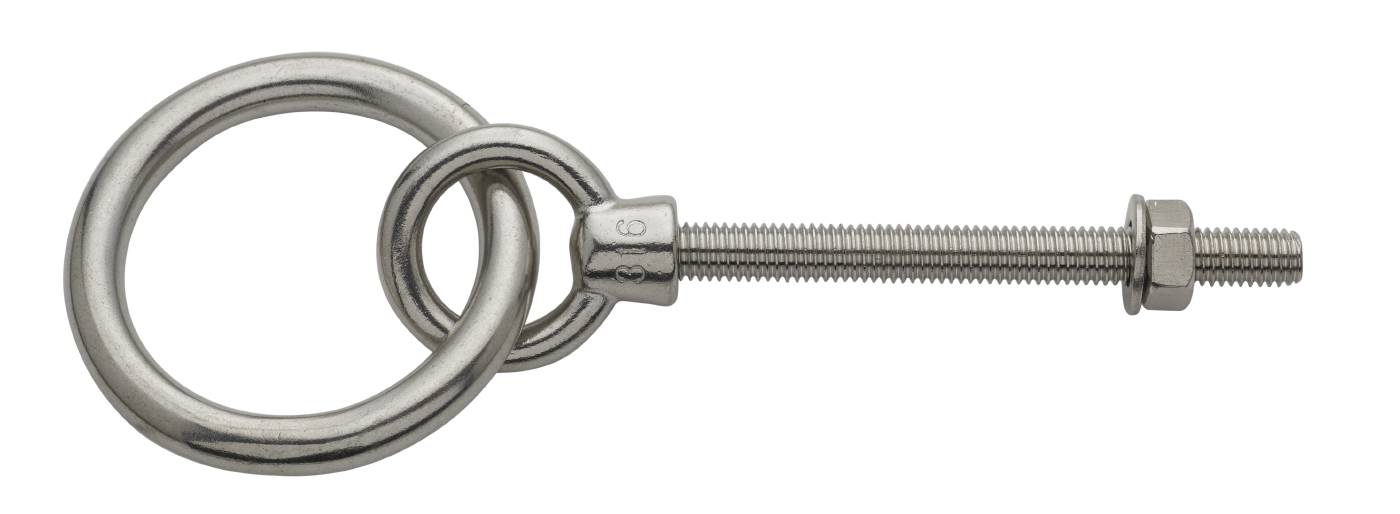 Kraftig förtöjningsring med bygel. Bultas genom bryggan. Med mutter och bricka.