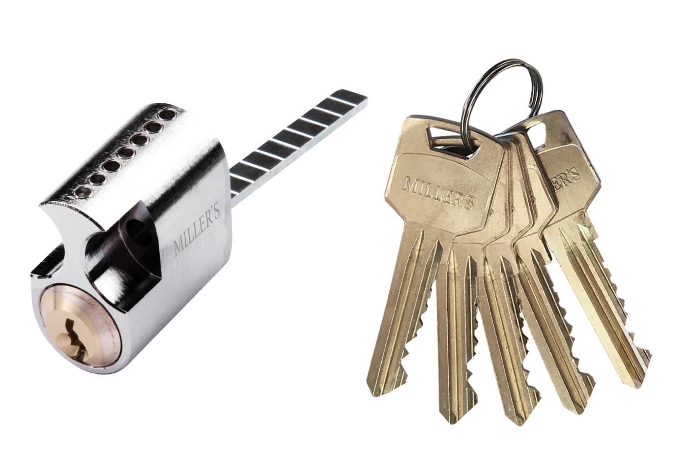Oval låscylinder i mässing. Rokoko utförande med lång medbringare. Levereras med 5st nycklar. 7-stift. För genomgående fastsättning. Uppfyller kraven för klass 3.