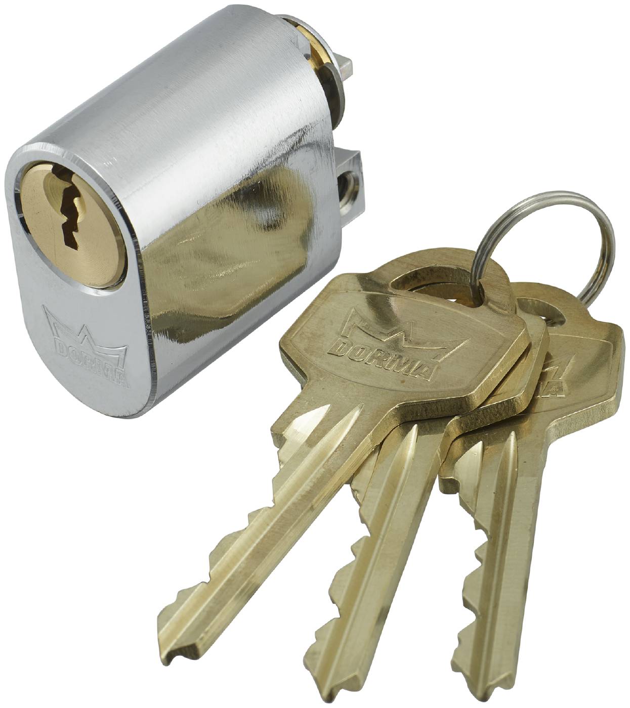 Oval låscylinder i mässing. Levereras med 3st nycklar. För skruvfastsättning genom låsstolpen.