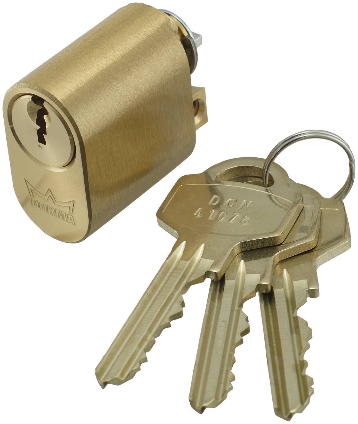Oval låscylinder i mässing. Levereras med 3st nycklar. För skruvfastsättning genom låsstolpen.