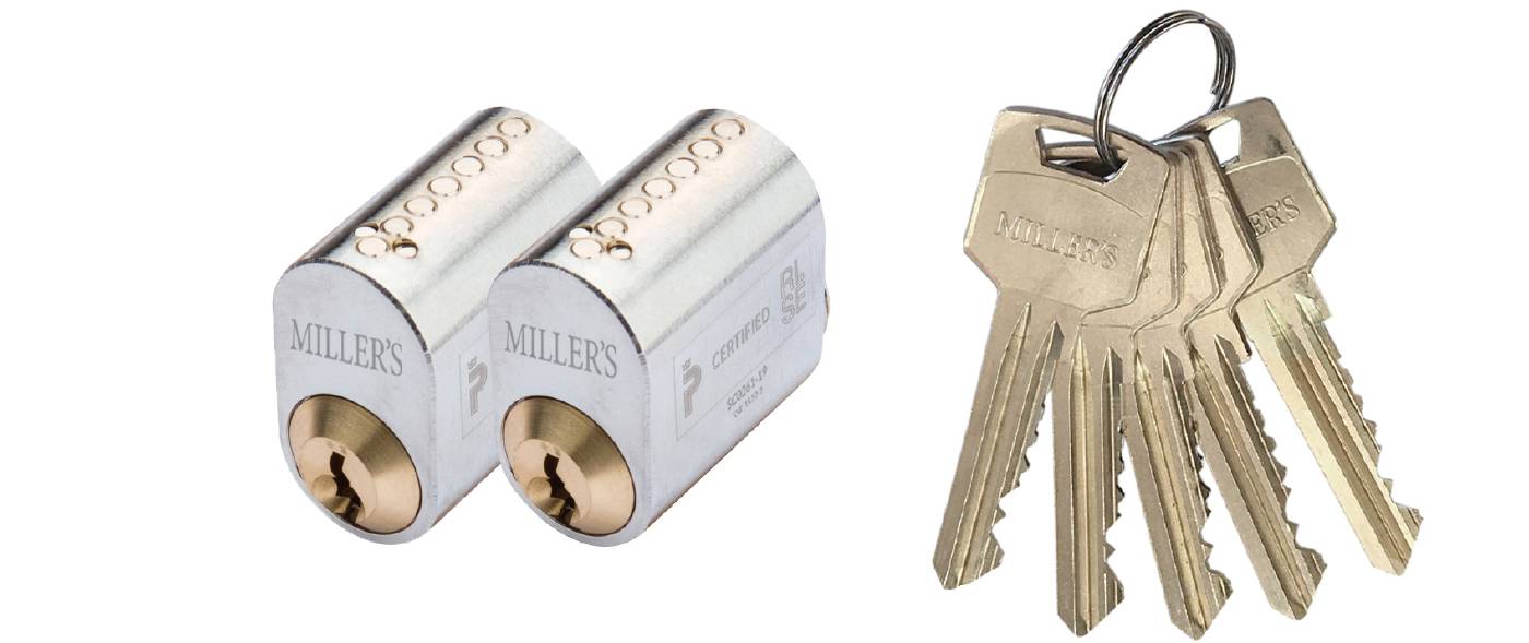 Oval låscylinder i mässing i satser om 2st cylindrar med lika låsning. Levereras med 5st nycklar. 7-stift. För genomgående fastsättning. Uppfyller kraven för klass 3.