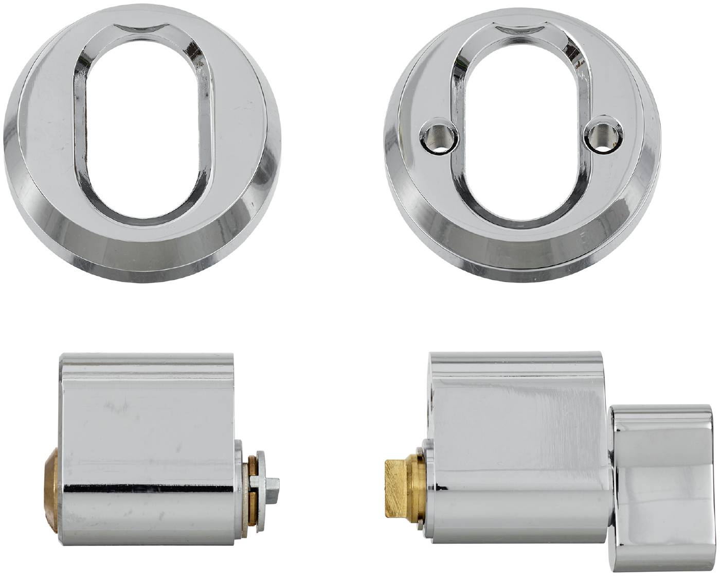 Cylinderset med ovalcylinder utsida och vredcylinder insida och båda med bakkantsfäste där fastsättning av cylindern sker genom låsstolpen. Levereras med cylindrar, universal cylinderringar, skruv och förlängningsdel 15mm. Används där inte speciella säkerhetskrav ställs.