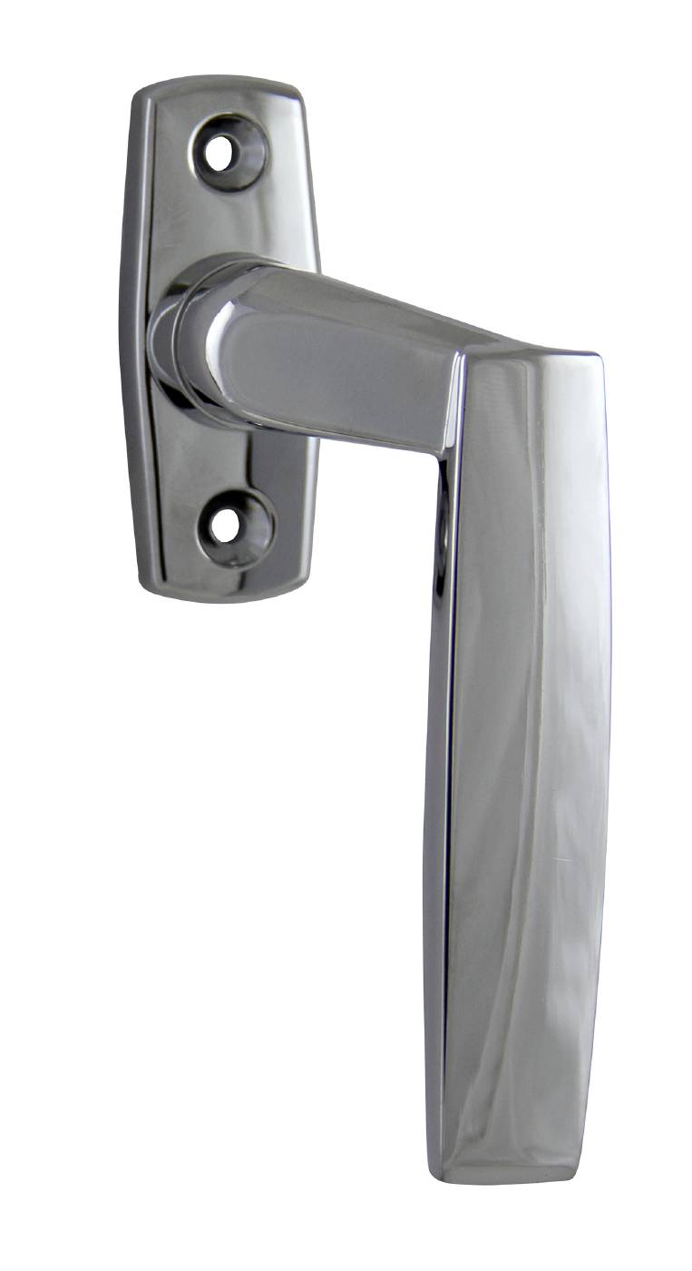 Fönsterhandtag i zink för fönster, altan och balkongdörrar. Finns i vänster, höger samt rakt utförande. Längd handtag 95mm. Mått fäste 23x60mm.