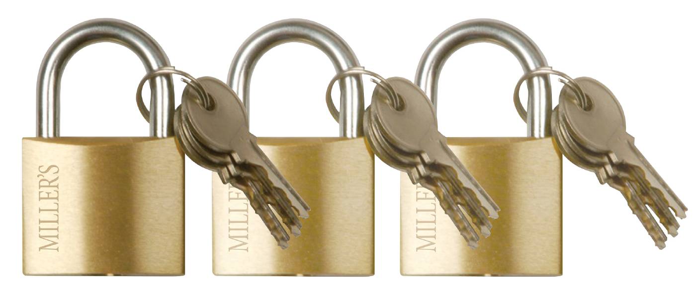 Hänglås av kraftigare modell i massiv mässing med cylinder i mässing. Härdad dubbelreglad bygel i stål. Användningsområde: Klädskåp, förråd, verktygslådor m.m där inga specifika krav på låsning krävs. De artiklar som har 2-pack eller 3-pack har likalåsning.