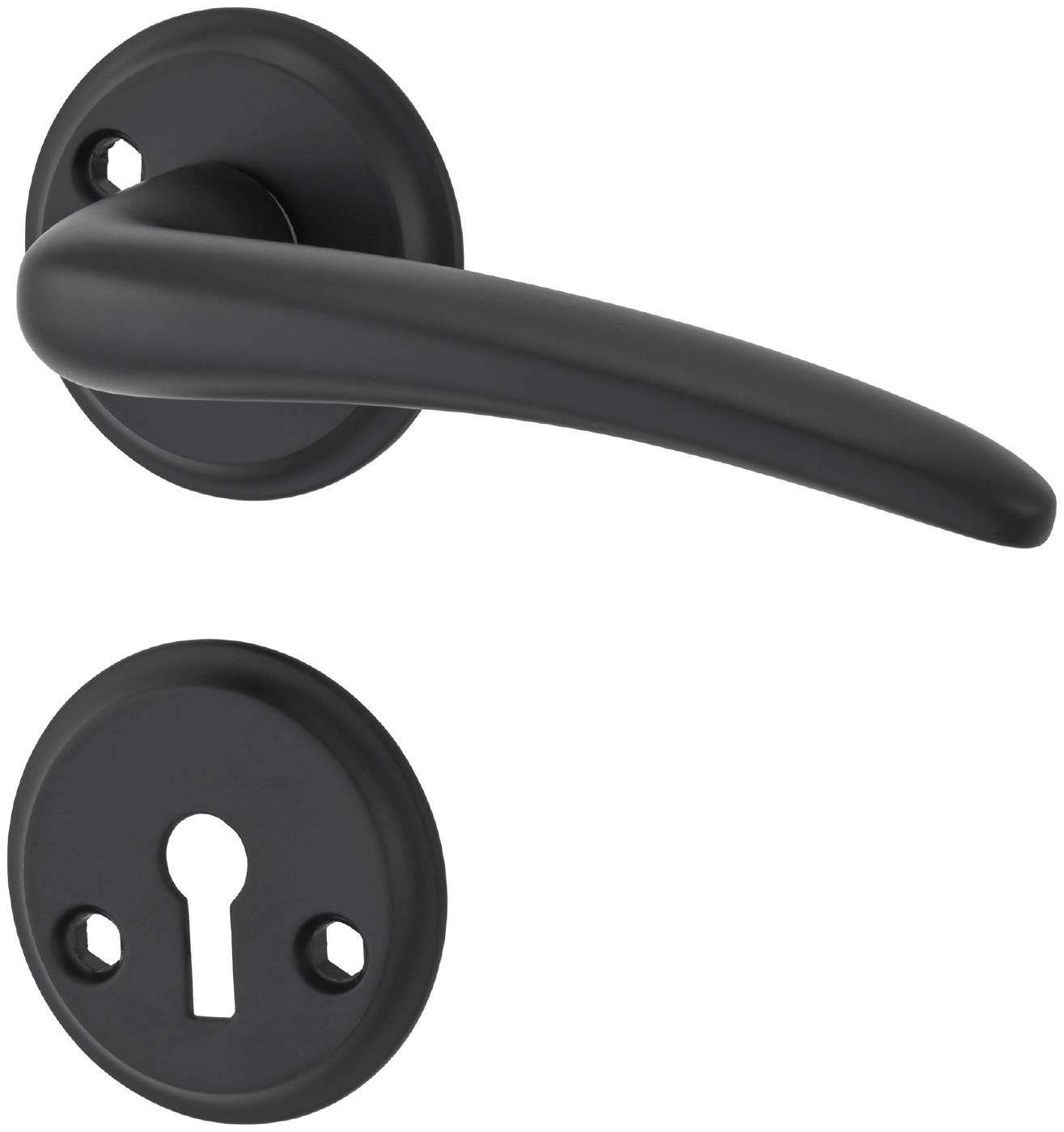 Dörrhandtag för innerdörr. Levereras inklusive nyckelskyltar, roddarpinne, nippel och skruv M4.