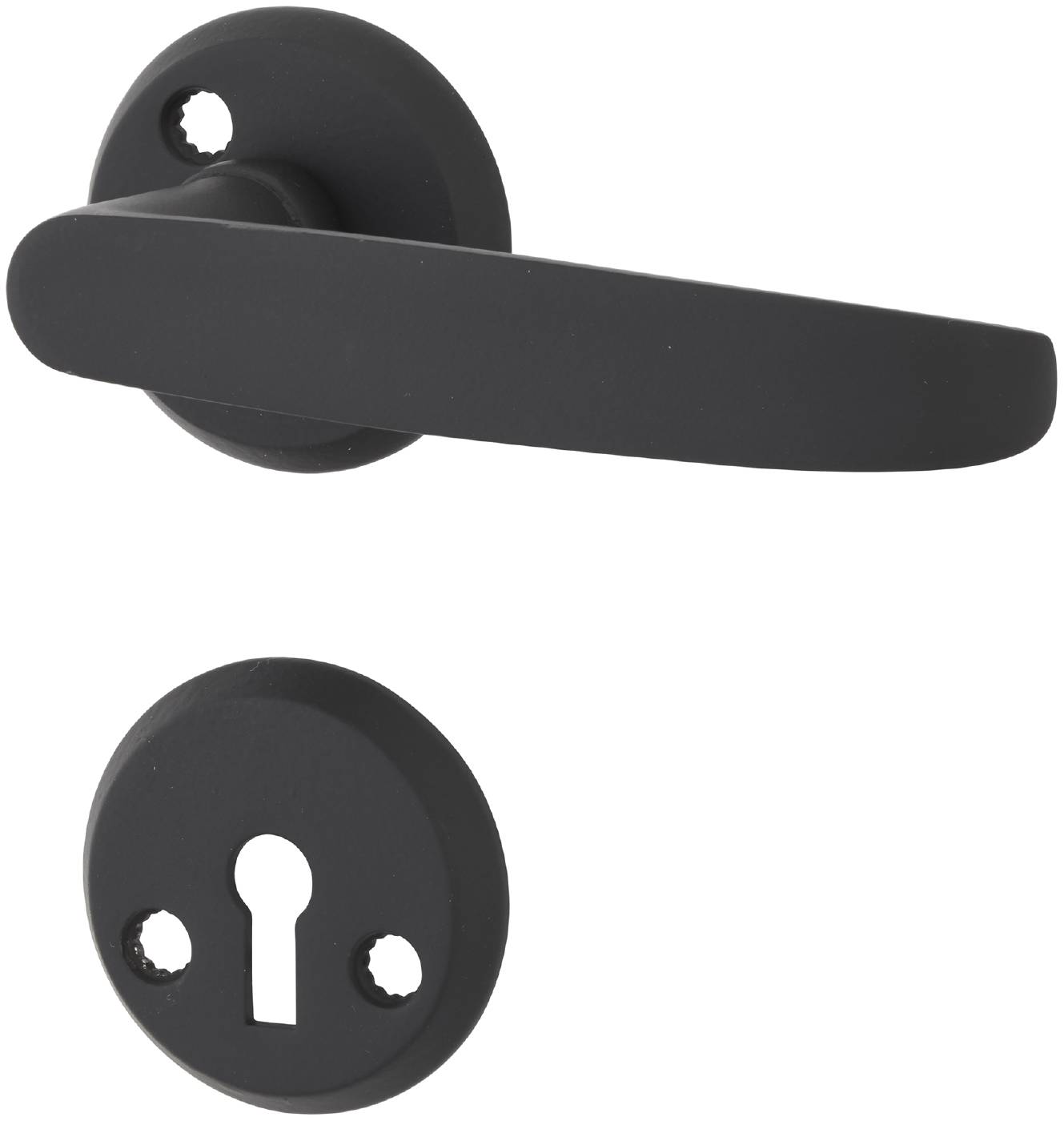 Dörrhandtag för innerdörr. Levereras inklusive nyckelskyltar, roddarpinne och skruv M4.