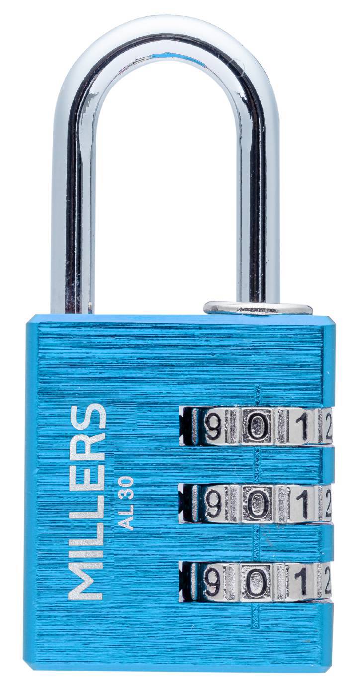 Kombinationshänglås av massiv aluminium med stålbygel. Enkelt att ställa in din egen personliga kod. Finns i 30mm med tre sifferhjul och 40mm med fyra sifferhjul. Användningsområde: Resväska, Klädskåp, förråd, verktygslådor, omklädningsrum, skolor m.m där inga specifika krav på låsning krävs.