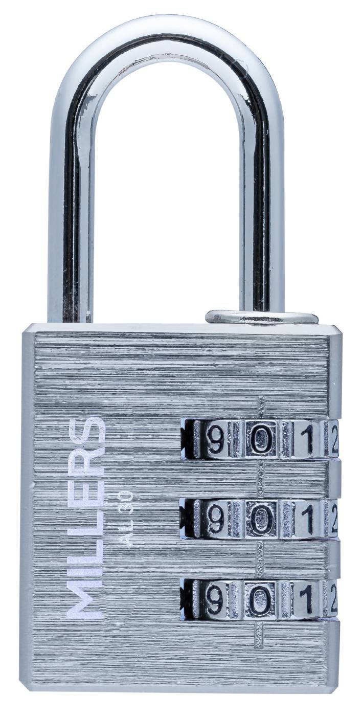 Kombinationshänglås av massiv aluminium med stålbygel. Enkelt att ställa in din egen personliga kod. Finns i 30mm med tre sifferhjul och 40mm med fyra sifferhjul. Användningsområde: Resväska, Klädskåp, förråd, verktygslådor, omklädningsrum, skolor m.m där inga specifika krav på låsning krävs.