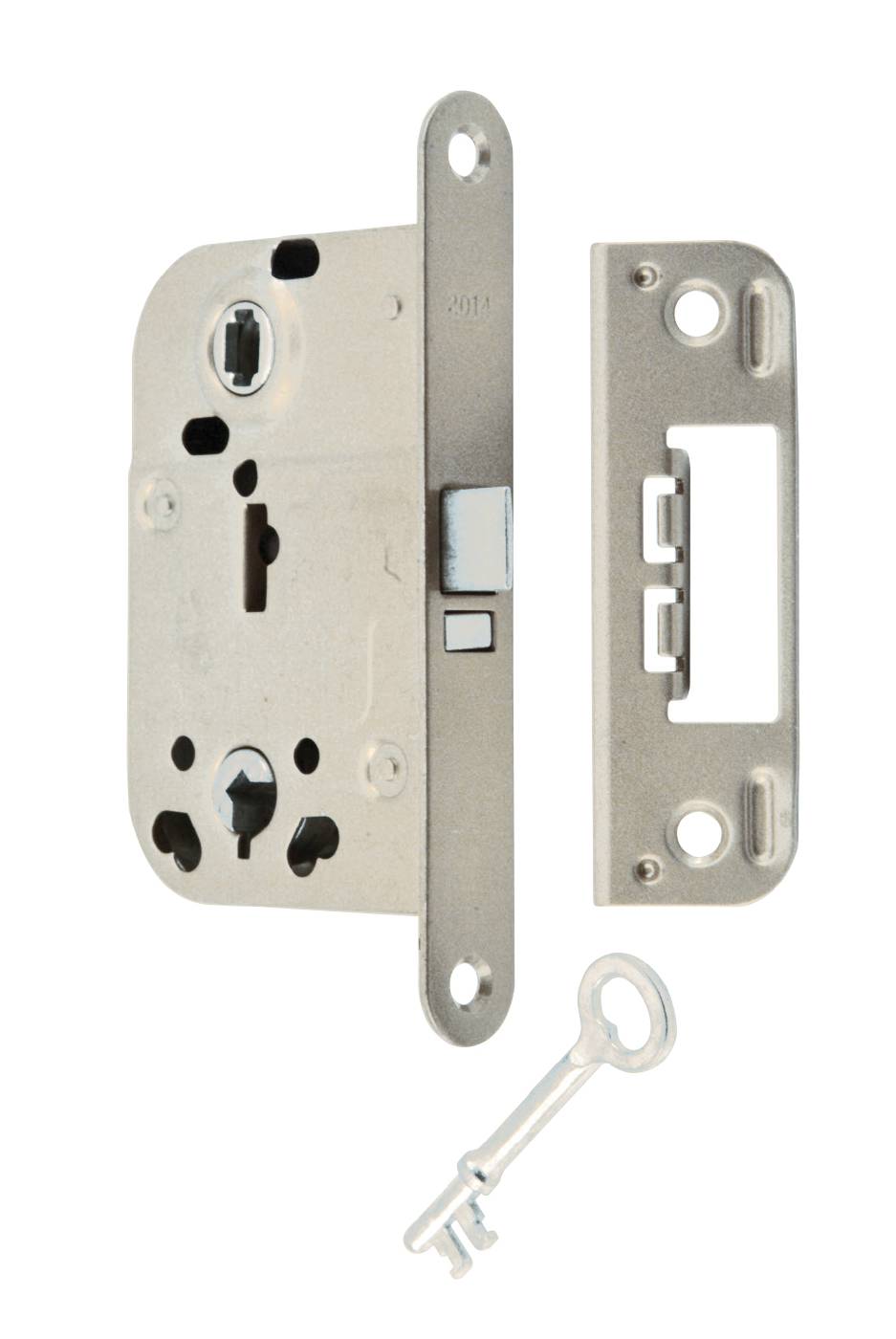 Låshus för lätta innerdörrar med regel och tryckesfall. Låses med nyckel eller wc- vred. 90° nyckelvridning i regelns rörelseriktning. Utdragbar och vändbar fallkolv för ändring Höger/Vänster. Levereras med nyckel och slutbleck. Dorndjup 45mm. Mått stolpe 20mmx150mm.