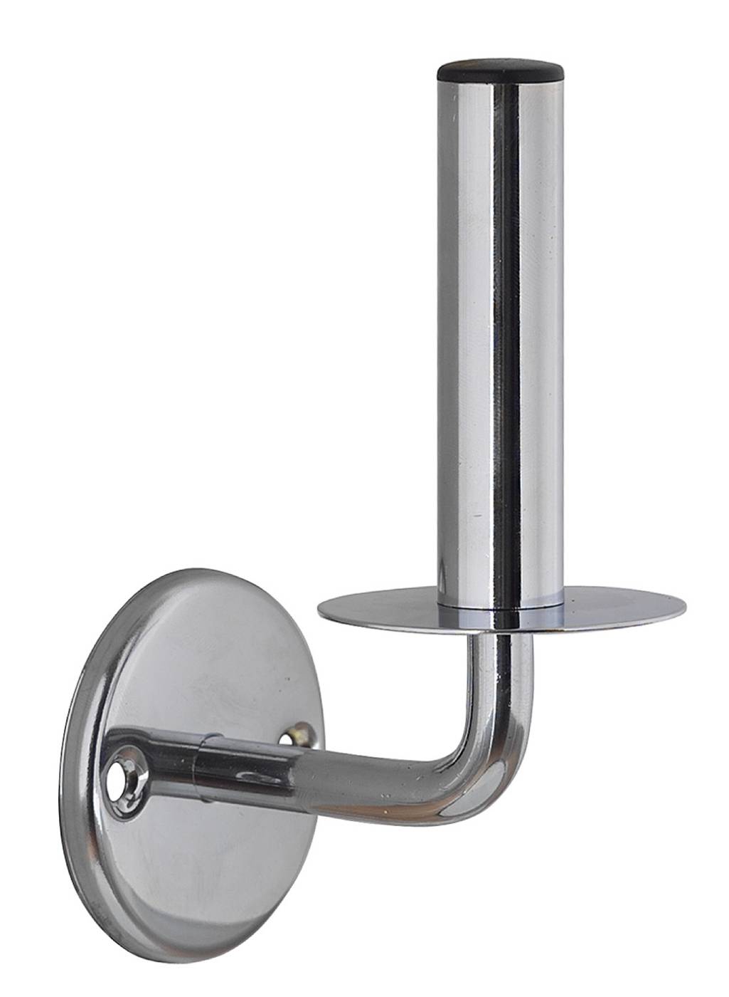 Väggfast toalettpappershållare med plats för en reservrulle.
