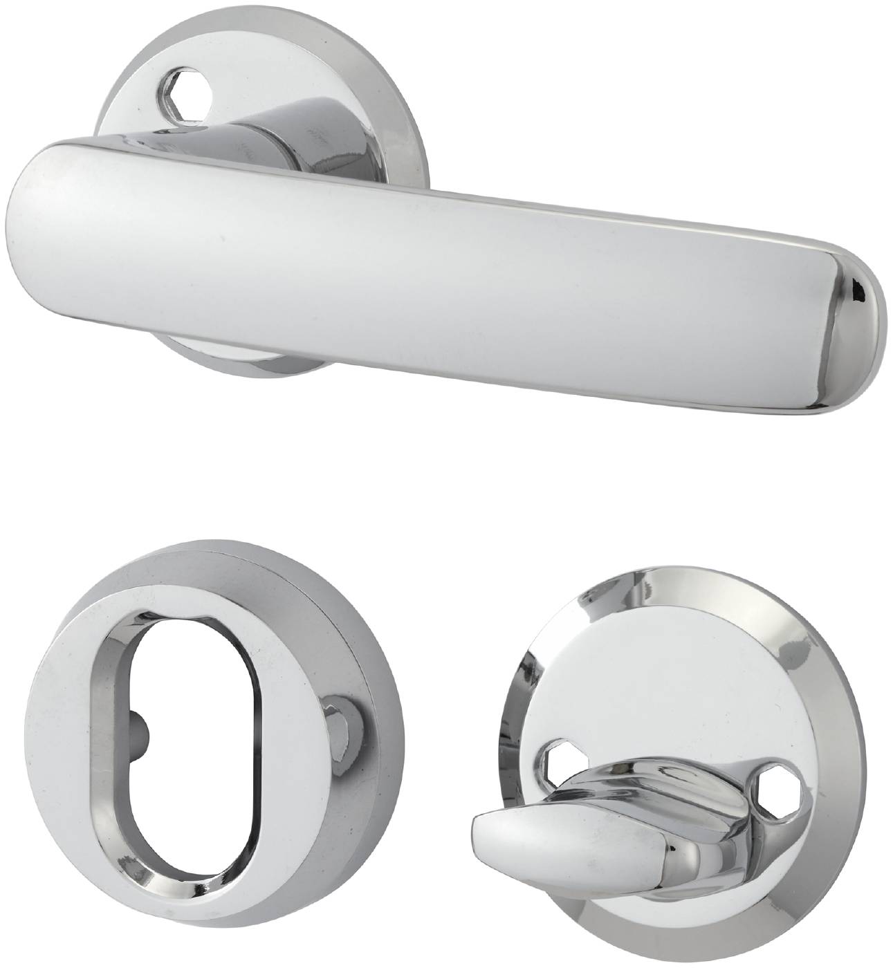 Dörrhandtag för ytterdörr utan returfjäder. Inklusive cylinderbehör, roddarpinne och skruv M5.