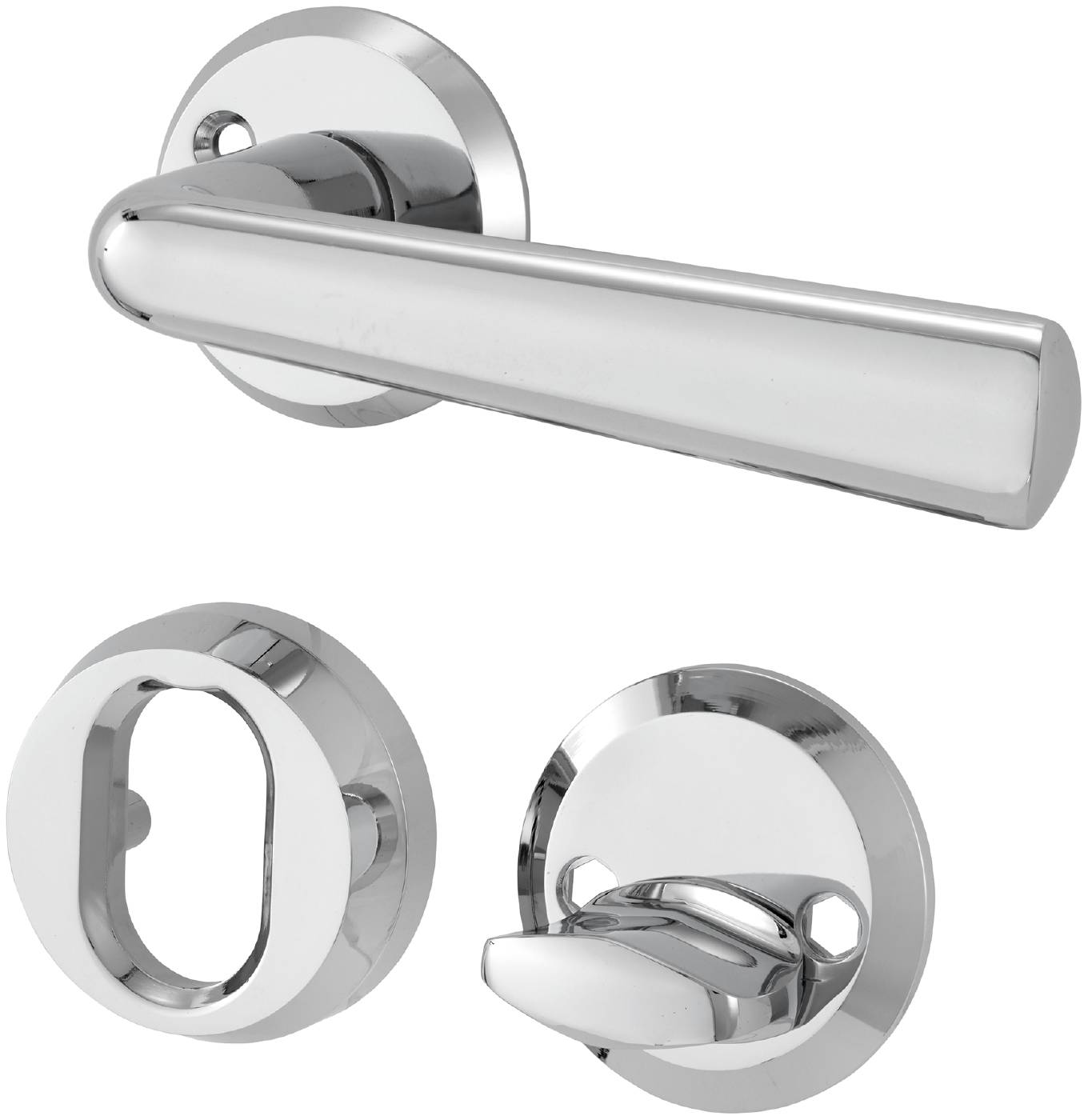Dörrhandtag för ytterdörr med enkelverkande returfjäder. Inklusive cylinderbehör, roddarpinne och skruv M5.