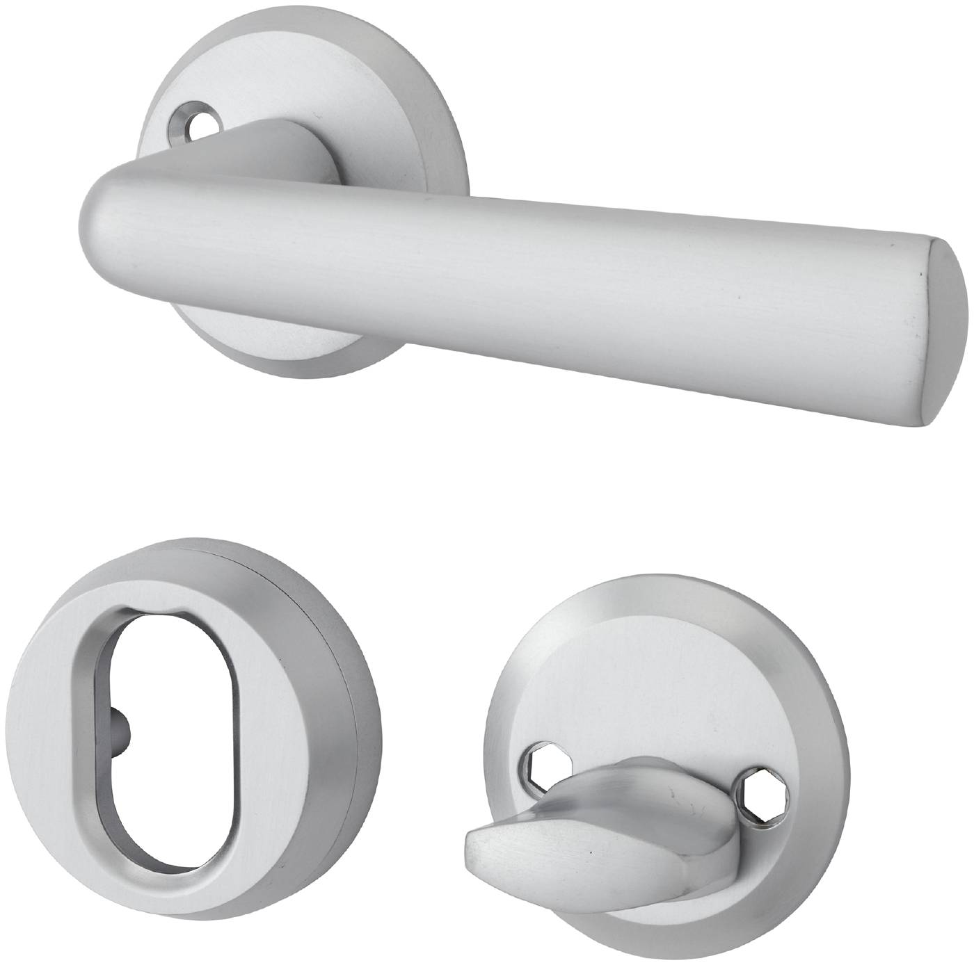 Dörrhandtag för ytterdörr med enkelverkande returfjäder. Inklusive cylinderbehör, roddarpinne och skruv M5.