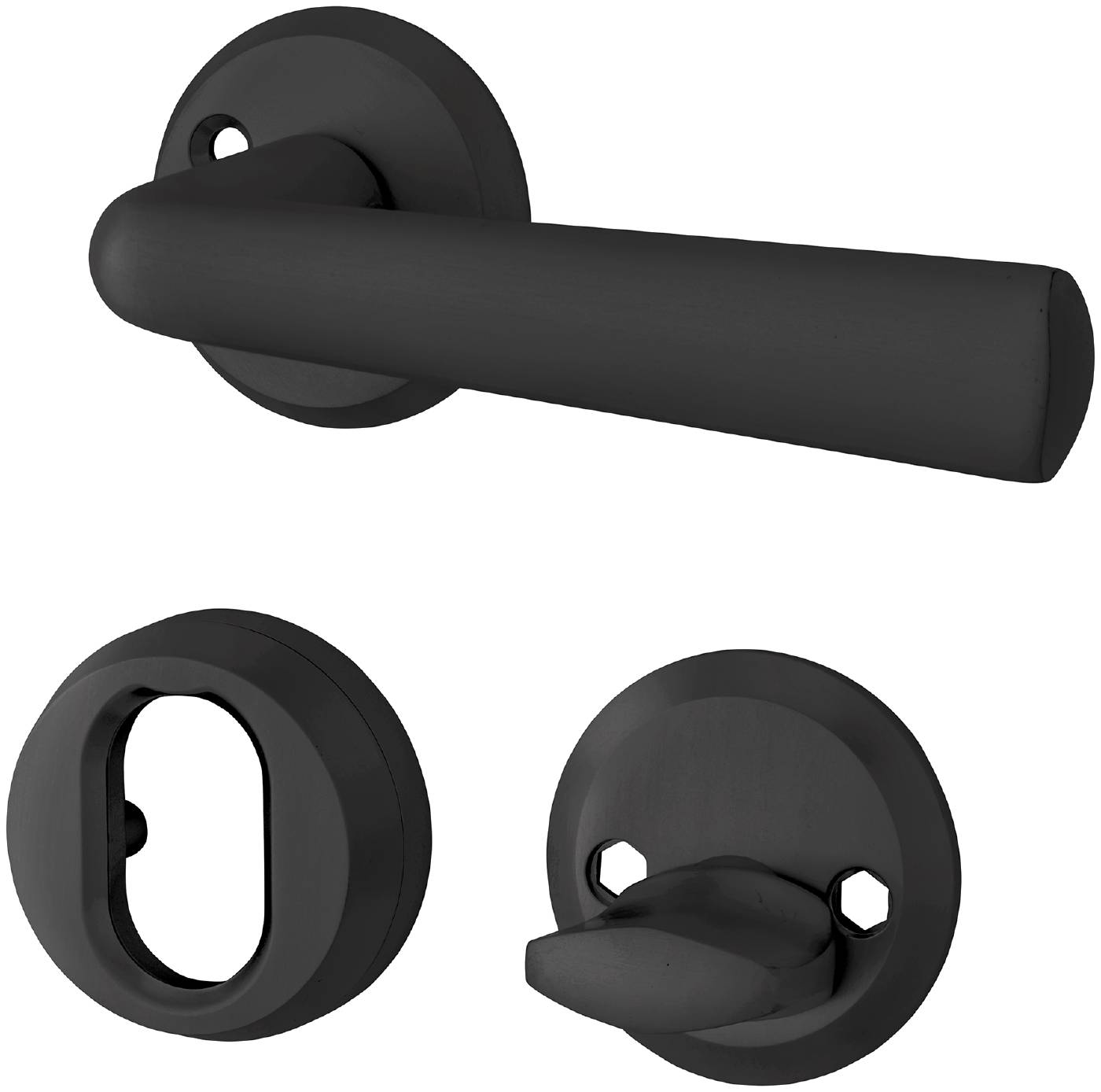 Dörrhandtag för ytterdörr med enkelverkande returfjäder. Inklusive cylinderbehör, roddarpinne och skruv M5.